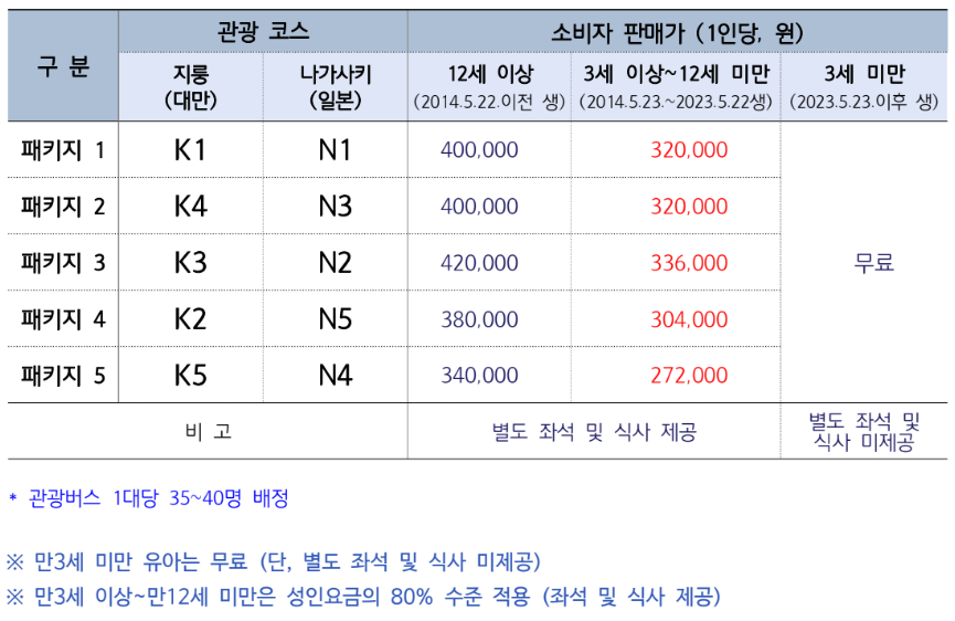 - 크루즈 선상팁 - 선내 개별결제 인사이드~발코니 (1인 1박당 $16 * 5박 = $80) 미니스위트 이상 (1인 1박당 $19 * 5박 = $95) ※ 4세~17세(성인의 50%), 3세 이하 면제 - 일본 국제관광 여객세 $8 - 선내 개별결제 - 선내 유료시설 이용 및 개인경비 (물, 음료, 주류 등) - 선내 인터넷(와이파이) -선내 개별결제 - 기항지관광비용 (3,5일차) - 34만원~42만원 (코스별로 상이) ※현지에서는 구매 불가합니다. |