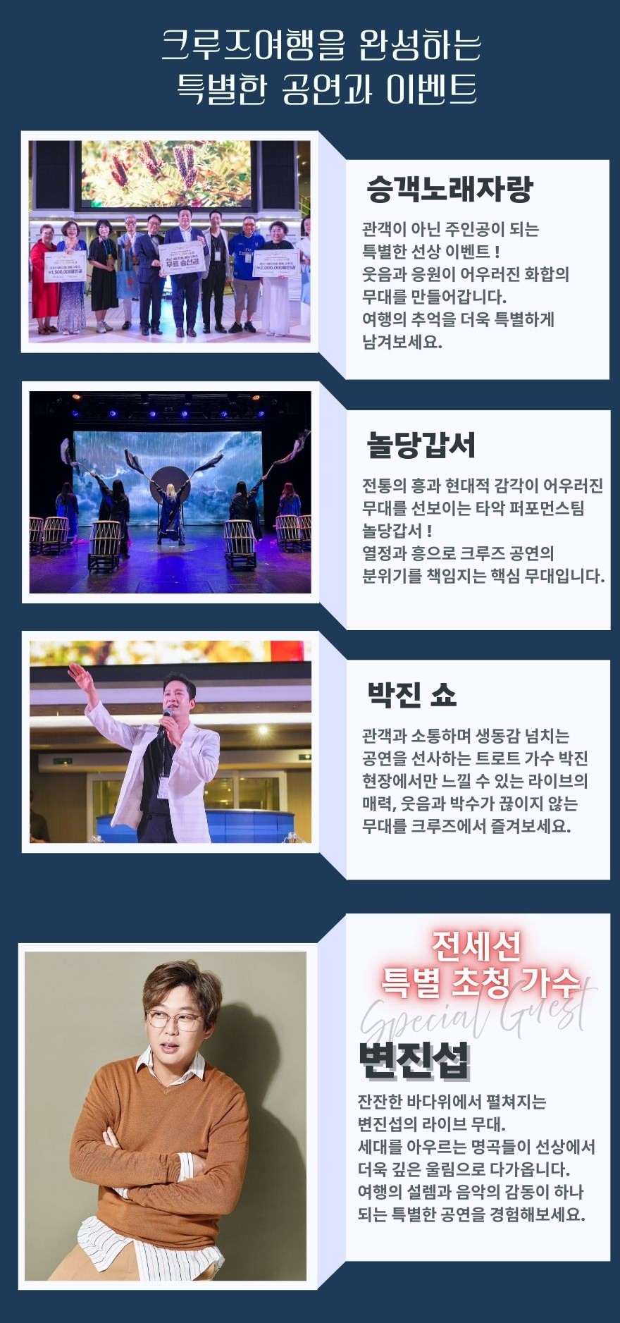 * 크루즈 요금에는 객실요금, 항만세, 선내 식사 및 선상프로그램이 포함되어 있습니다.