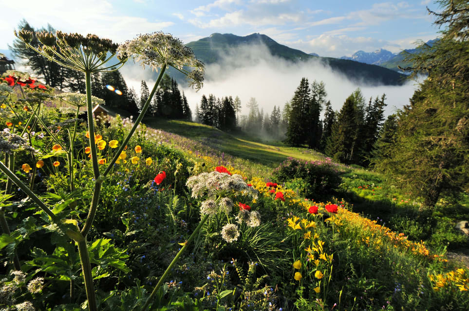 아름다운 숲과 호수, 알프스의 명봉으로 둘러싸여 쾌적한 고지대 기후와 청명한 하늘이 있는 생모리츠는 고급 호텔과 유명 명품 브랜드 상점들이 늘어서며 세계적인 VIP들이 모이는 환상적인 산악 리조트 지역입니다. 사계절 내내 즐길 수 있는 하이킹과 골프, 만년설과 빙하가 펼쳐진 베르니나 산군의 명봉, 아름다운 호수 등으로 볼거리가 풍성하며, 두 번의 동계 올림픽과 스키 월드컵을 개최하는 등 윈터 스포츠의 성지로서도 유명합니다. 빙하 특급열차와 베르니나 열차 등 인기 절경 루트의 발착점이기도 합니다.